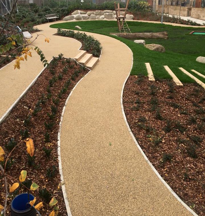 Construction of reinforced retaining walls to support soil and manage level changes on site.