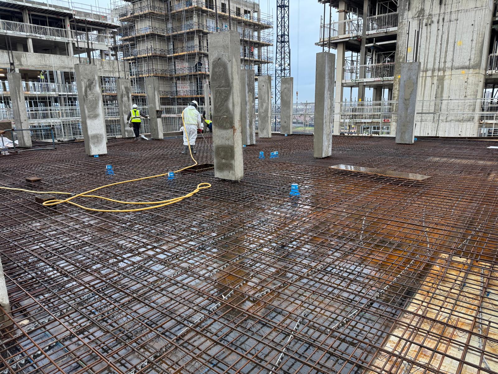 • Slabs: We installed reinforced concrete slabs using carefully positioned rebar and mesh in line with structural drawings. The works included formwork, concrete placement, compaction, and finishing to achieve flat, durable floor levels across all designated zones.