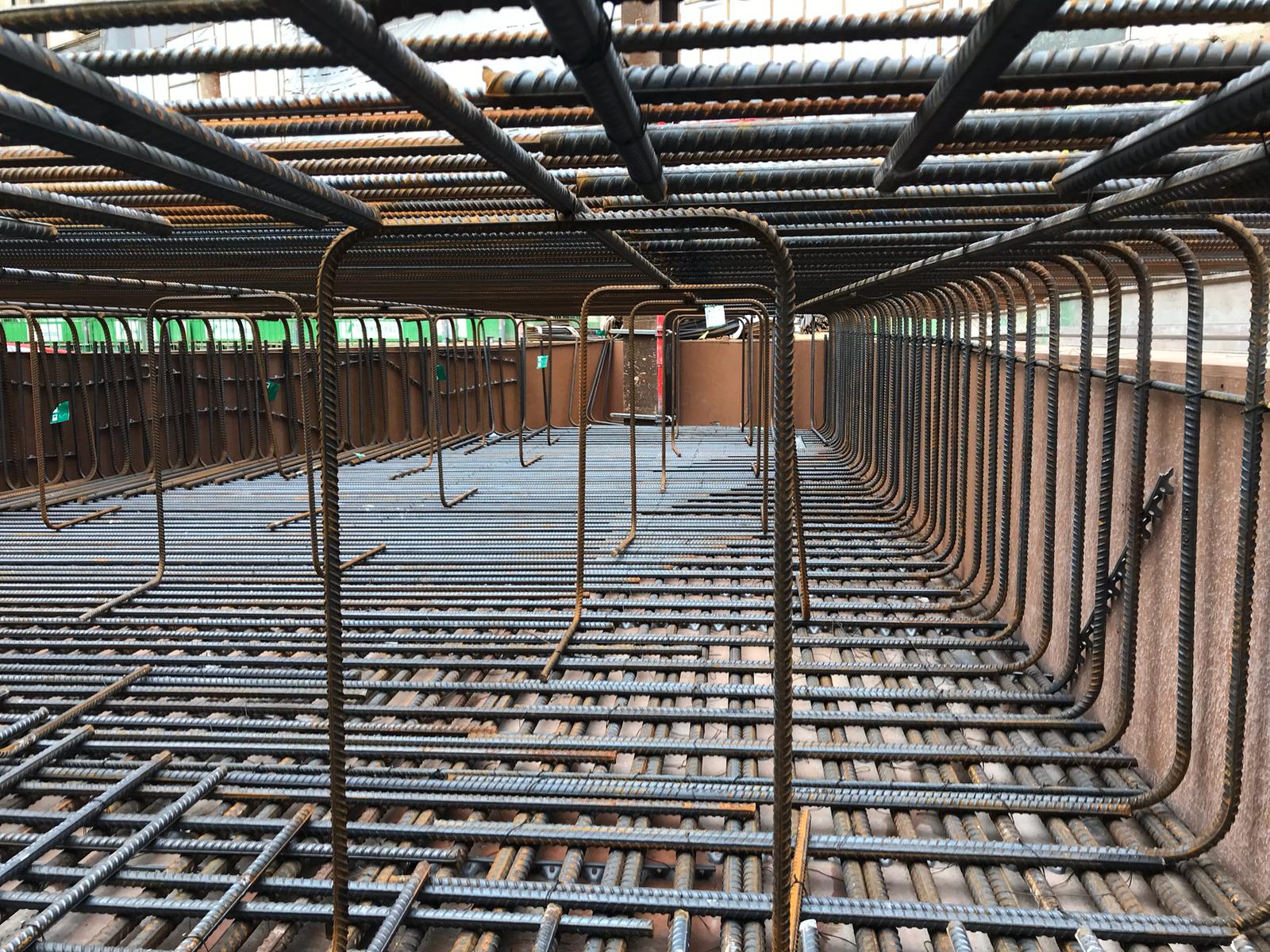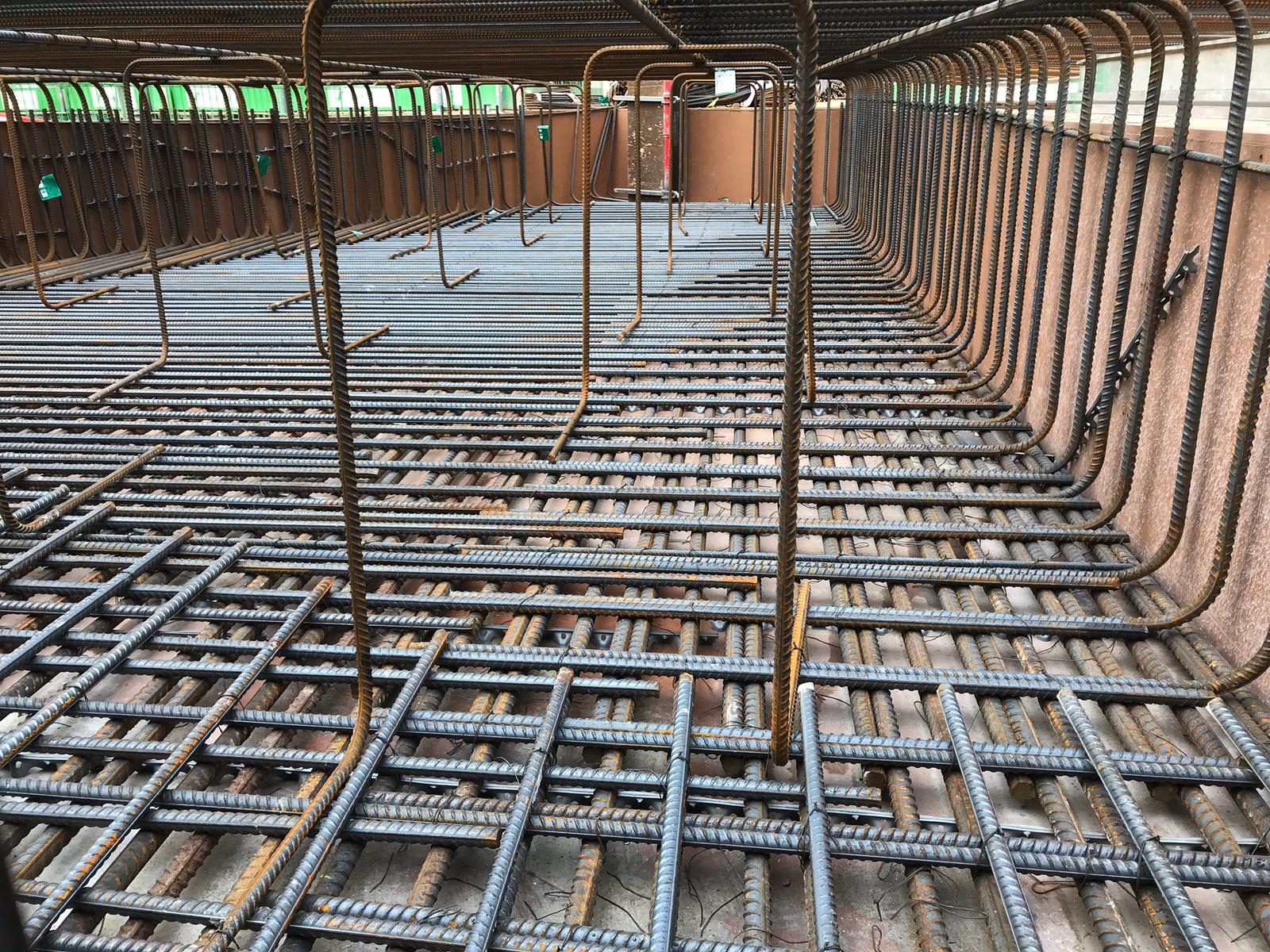 Fixing is fastening the steel reinforcing bars so that they stay in the correct place between the spacers and relative to each other.